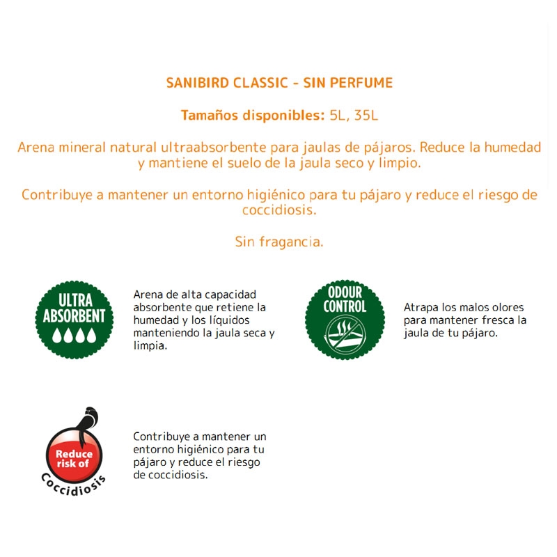 Sanibird Arena Absorbente para Pájaros mantiene la jaula limpia y seca, absorbe residuos y ayuda a controlar los malos olores. Ideal para garantizar un entorno higiénico y saludable para tus aves.