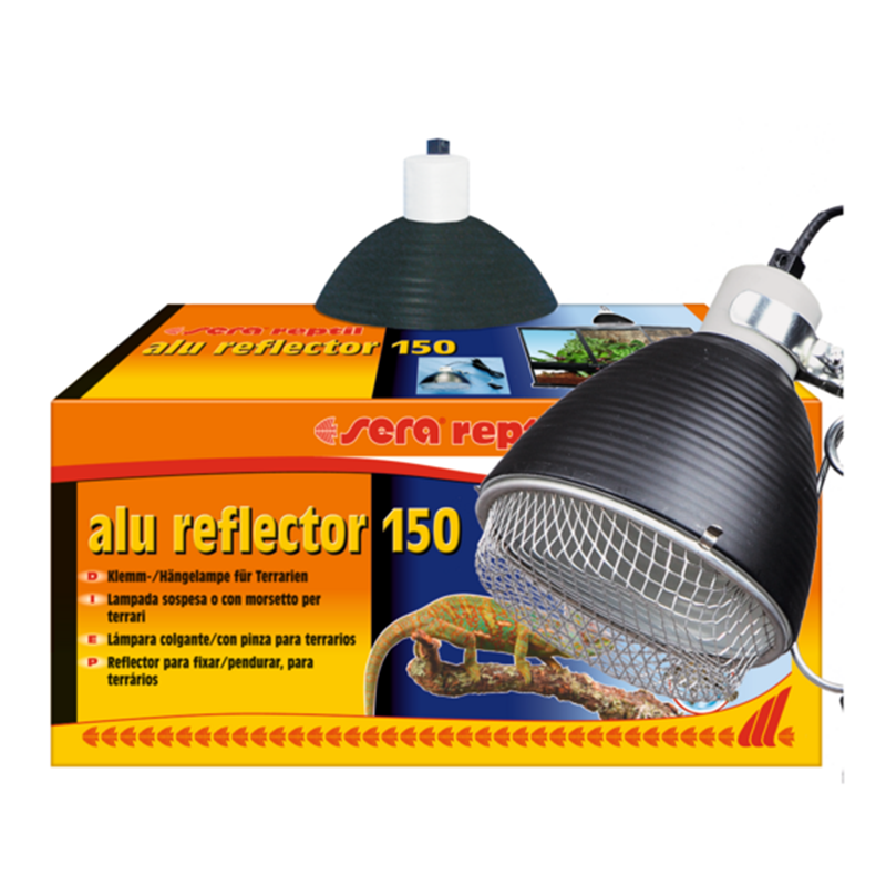 El Sera Alu Reflector 150 es una lámpara colgante diseñada para optimizar la iluminación y la emisión de calor en terrarios. Gracias a su reflector de aluminio, dirige la radiación de forma eficiente hacia la zona deseada, creando puntos de asoleo adecuados para reptiles.