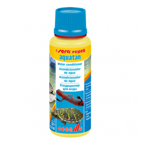 Sera Reptil Aquatan es un acondicionador de agua que elimina cloro y cloraminas y aglutina metales pesados, creando agua segura para tortugas acuáticas, ranas y otros anfibios.
