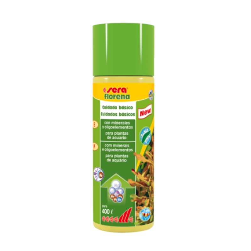 Sera Florena es un fertilizante líquido diseñado para todas las plantas acuáticas que absorben nutrientes principalmente por las hojas. Su fórmula aporta de forma equilibrada los minerales y oligoelementos esenciales que las plantas necesitan para crecer fuertes, mantener colores intensos y cumplir su función depuradora en el acuario.