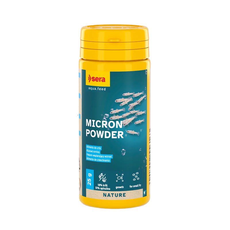 Sera Micron Nature es un alimento de cría en polvo para larvas de peces, alevines y nauplios de artemia, que aporta plancton de alta calidad y favorece un crecimiento sano y equilibrado desde los primeros días de vida.