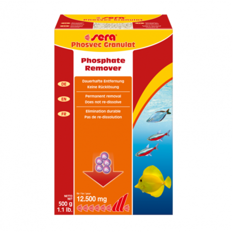 El fosfato es un nutriente esencial para las plantas acuáticas, pero cuando se encuentra en exceso se convierte en una de las principales causas de la proliferación de algas no deseadas. Sera Phosvec Granulat ha sido desarrollado para eliminar el fosfato del agua de manera rápida, segura y con un efecto duradero.