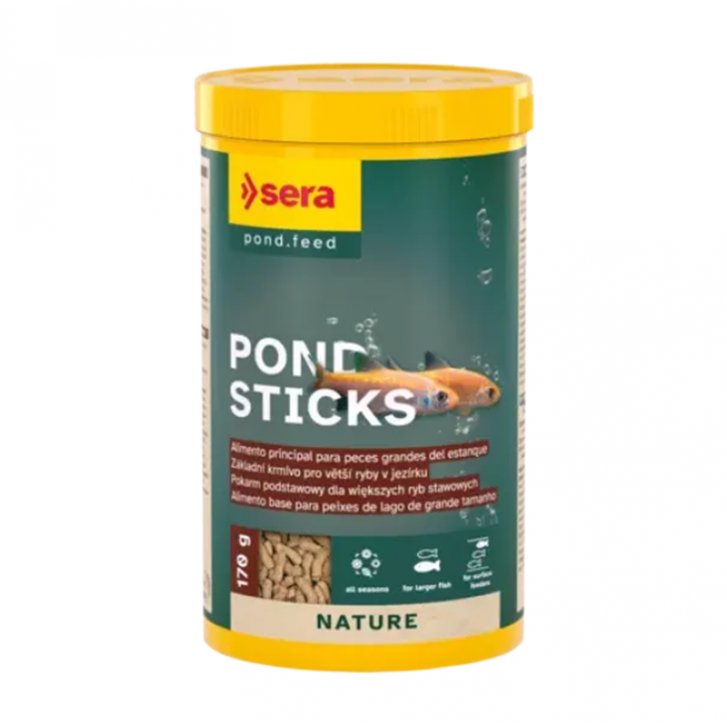 Sera Pond Sticks es un alimento principal en sticks flotantes para peces grandes de estanque como koi y carpas doradas grandes, con una fórmula equilibrada que favorece vitalidad, digestión y defensas durante todo el año.