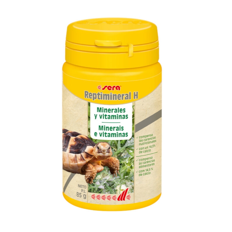 Sera Reptimineral H es un suplemento vitamínico y mineral en polvo para reptiles herbívoros que ayuda a prevenir carencias nutricionales, favorece un desarrollo óptimo, refuerza el sistema inmunitario y garantiza una muda saludable.