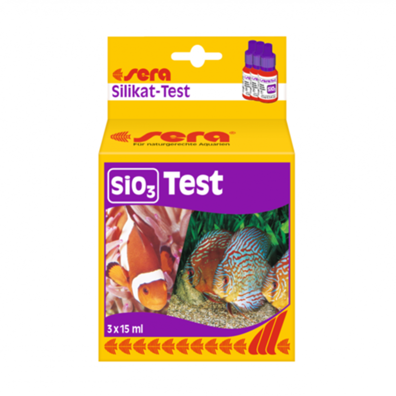 El SERA Test de SiO3 ha sido desarrollado para determinar de manera rápida y fiable la concentración de silicato en acuarios de agua dulce y salada. El silicato es uno de los principales responsables del crecimiento de algas diatomeas, especialmente en acuarios nuevos o tras cambios importantes de agua.