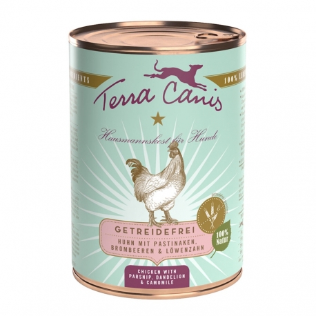 Esta comida húmeda para perros forma parte de una gama grain free diseñada como alimento completo para perros adultos de peso normal y cualquier raza. La receta utiliza pollo como base proteica y prescinde de cereales, lo que la convierte en una alternativa adecuada para perros con sensibilidad o intolerancias a los cereales.