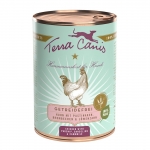 Ingredientes: Pollo 49% (estómago de pollo 26%, corazón de pollo 15%, carne muscular de pollo 4%, piel de pollo 2%, hígado de pollo 2%), caldo 23%, calabaza 12%, manzana 6%, zarzamora 2%, minerales 1%*, harina de coco, chirivía 0,8%*, aceite de colza, harina de semilla de calabaza, levadura de cerveza*, cáscara de psilio*, manzanilla*, cáscaras de escaramujo*, concha de ostra*, diente de león 0,1%*, sal de los Andes, arcilla mineral*, espirulina* (*seco).