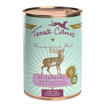 Esta comida húmeda para perros pertenece a una gama grain free formulada como alimento completo para perros adultos de peso normal y cualquier raza. Utiliza carne de caza como base proteica y prescinde de cereales, lo que la convierte en una opción adecuada para perros con sensibilidad o intolerancia a los cereales.