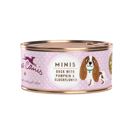 Esta comida húmeda para perros está formulada específicamente para cubrir las necesidades nutricionales de perros pequeños y razas mini. Se presenta en latas de 100 g, pensadas como ración individual diaria, y ofrece una receta grain free adecuada para perros adultos de peso normal que requieren una alimentación bien tolerada y fácil de consumir.