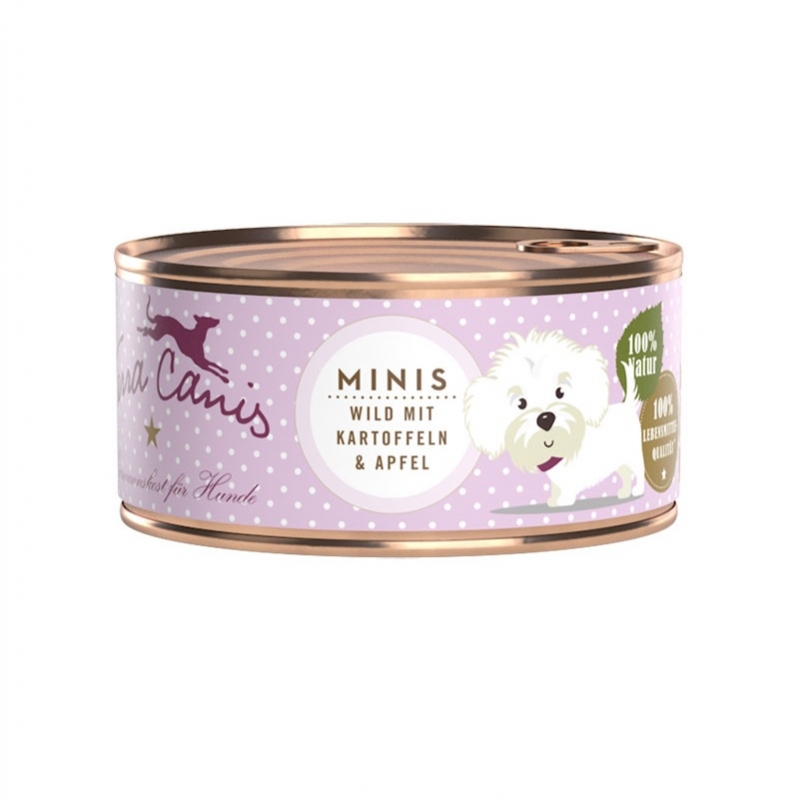 Comida húmeda para perros pequeños elaborada con venado, patata y manzana, una receta sin cereales de textura fina, pensada para perros mini y enanos.