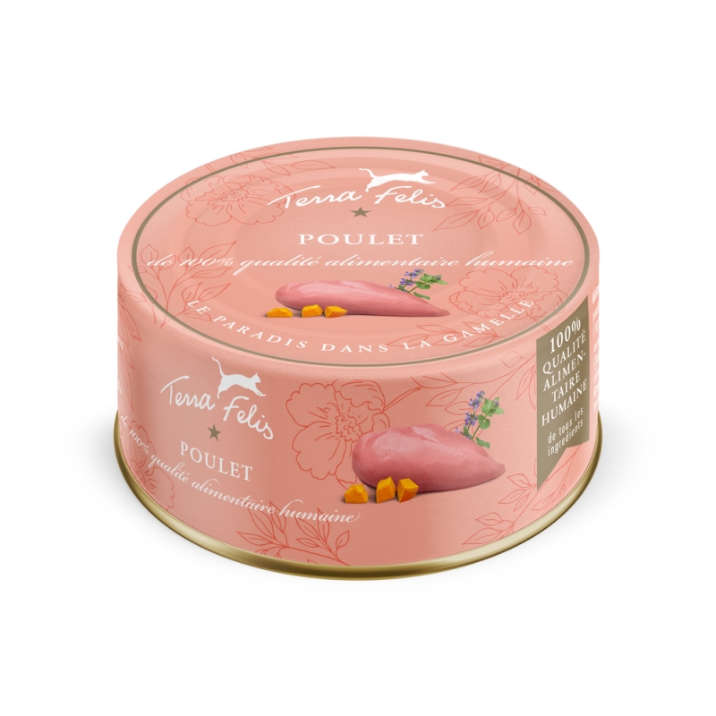 Comida húmeda para gatos monoproteica elaborada exclusivamente con pollo, una receta rica en carne y sin cereales, ideal para una alimentación diaria sencilla y de alta aceptación.