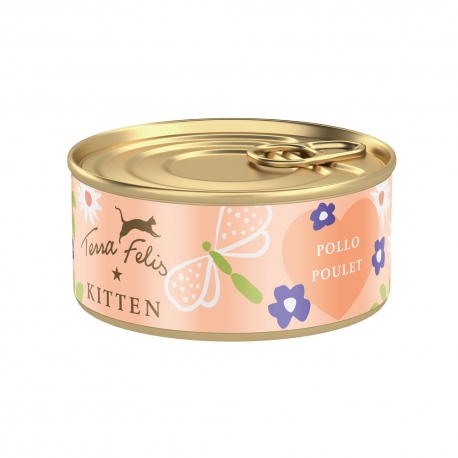 Esta comida húmeda para gatitos está formulada específicamente para cubrir las necesidades nutricionales durante los primeros meses de vida. Su receta se basa en un alto contenido en pollo, combinando diferentes partes ricas en nutrientes con caldo, lo que da lugar a una textura suave y muy palatable, ideal para facilitar la transición a la alimentación sólida.