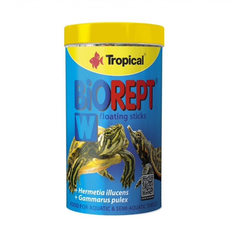 Tropical BioRept W es un alimento completo de uso diario, desarrollado específicamente para tortugas acuáticas y semiacuáticas de hábitos omnívoros y carnívoros. Su fórmula multicomponente reproduce de forma equilibrada la dieta natural de estos reptiles, basada en peces, moluscos, crustáceos e invertebrados.