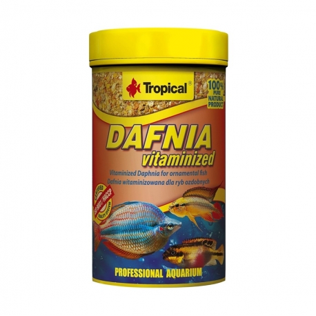 Tropical Dafnia Vitaminized es un alimento natural de alta calidad para peces ornamentales, elaborado a partir de dafnias (Daphnia pulex), pequeños crustáceos de agua dulce que forman parte del plancton natural y de la dieta habitual de muchos peces.