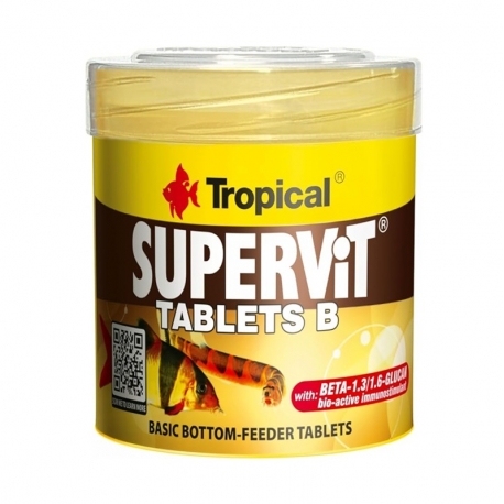 Tropical Supervit Tablets B son comprimidos completos para peces de fondo, tortugas acuáticas y caracoles, ideales para la alimentación diaria, con beta-glucano para apoyar la inmunidad y el desarrollo juvenil.