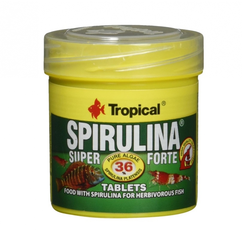 Tropical Super Spirulina Forte Tablets es un alimento en forma de pastillas autoadhesivas con un 36% de Spirulina platensis, diseñado para la alimentación diaria de peces demersales herbívoros, cíclidos africanos jóvenes, así como crustáceos de agua dulce y marina. También puede utilizarse como alimento complementario para peces omnívoros.