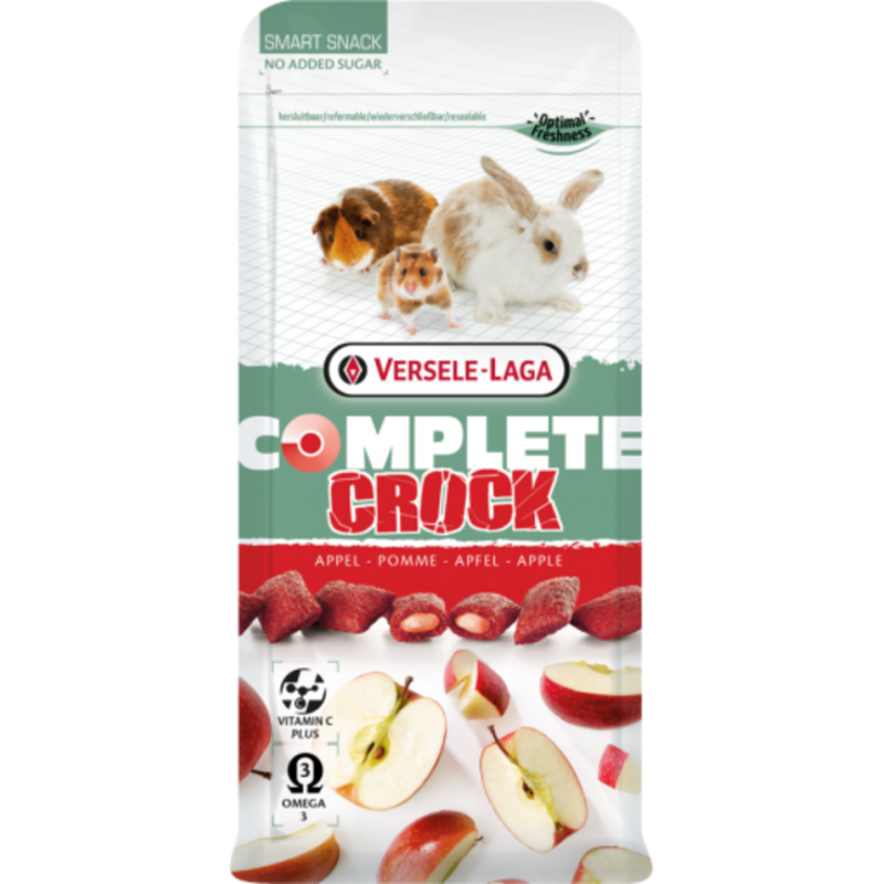 Versele Laga Complete Crock Snack de Manzana es un snack saludable para pequeños mamíferos, ideal para ratas, ratones, cobayas y conejos, ofreciendo sabor natural, apoyo dental y nutrición complementaria.