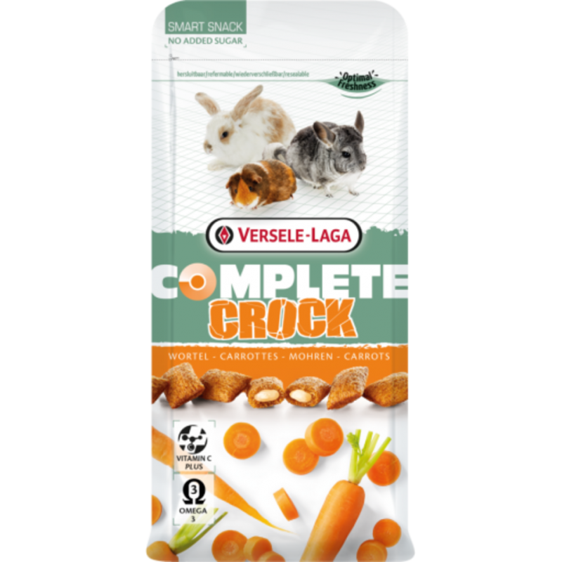 Versele Laga Complete Crock Snack de Zanahoria es un snack natural para pequeños mamíferos, perfecto para ratas, ratones, cobayas y conejos, con sabor delicioso, apoyo dental y nutrición complementaria.
