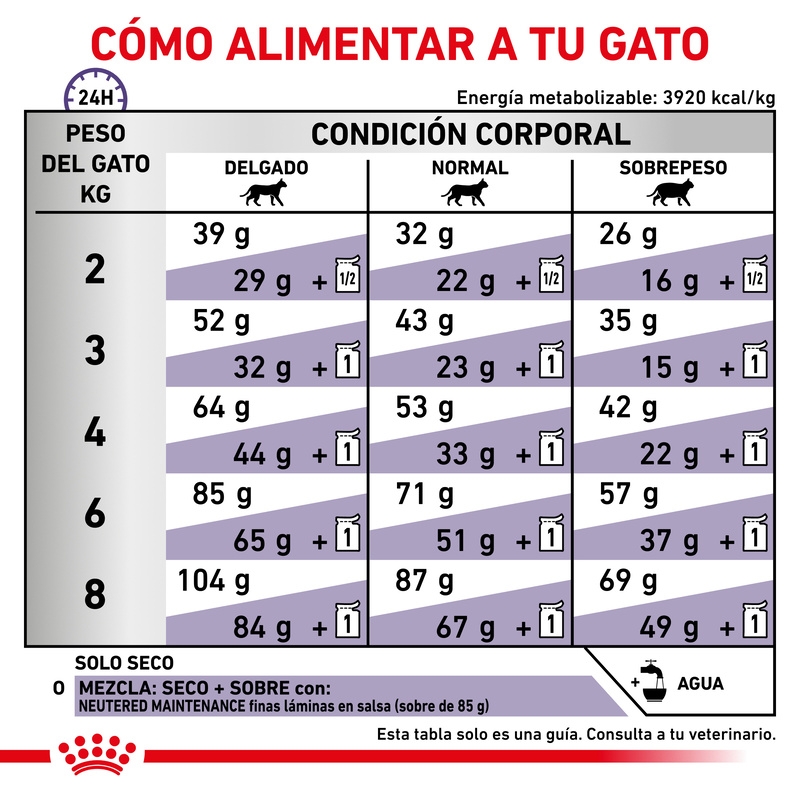 Royal Canin Veterinary Adult está formulado para cubrir las necesidades de gatos adultos a partir de 12 meses que presentan un nivel de actividad elevado o un metabolismo rápido. Su perfil nutricional contribuye a mantener la condición física del felino, aportando energía adaptada, alta palatabilidad y nutrientes esenciales.