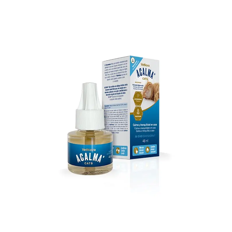 El recambio Acalma® Gatos 48 ml está especialmente formulado para reducir el estrés en gatos mediante ingredientes naturales que ayudan a calmar y equilibrar su comportamiento. Ideal para momentos de cambios, como mudanzas, visitas al veterinario o la llegada de un nuevo miembro a la familia, este producto favorece un entorno tranquilo y seguro para tu mascota.