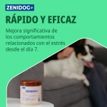 Gracias a su tecnología de difusión en gel, Zenidog ofrece una acción constante y duradera. Estudios han demostrado una mejora significativa a partir del día 7, con una reducción de hasta el 89 % de los comportamientos relacionados con el estrés, convirtiéndolo en una solución eficaz y cómoda para el bienestar canino.