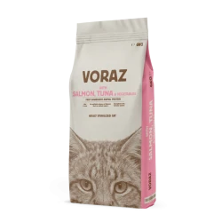 El pienso para gatos esterilizados Voraz con salmón y vegetales es un alimento completo y equilibrado diseñado específicamente para cubrir las necesidades nutricionales de gatos adultos esterilizados. Su fórmula ayuda a mantener un peso saludable mientras refuerza el sistema inmune y el bienestar general.