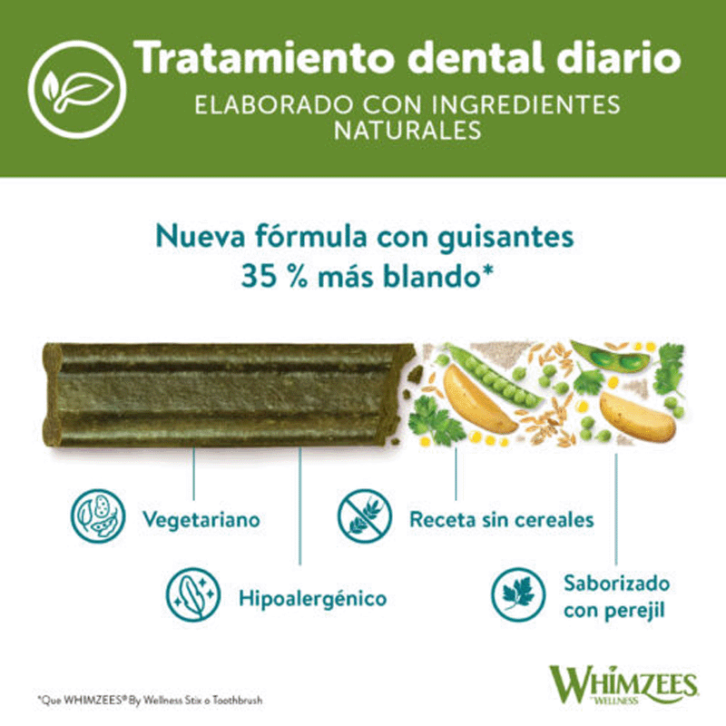 Elaborados con ingredientes 100% naturales, estos sticks dentales han sido diseñados especialmente para perros de razas pequeñas de 9 meses en adelante. Gracias a su textura suave y forma en sticks, ayudan a: