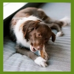Snack dental vegetariano y libre de cereales, ideal para perros medianos con sensibilidad alimentaria.