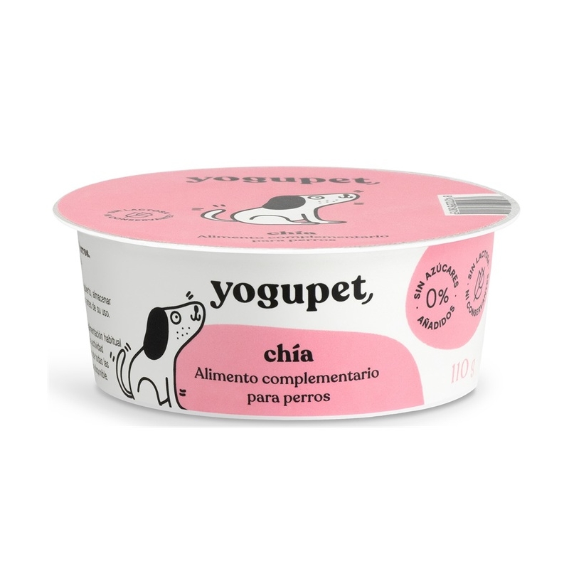Un yogur cremoso para perros con semillas de chía, ideal para perros de todas las edades que necesitan un snack nutritivo, digestivo y rico en omega 3, perfecto como premio, topping o complemento diario.