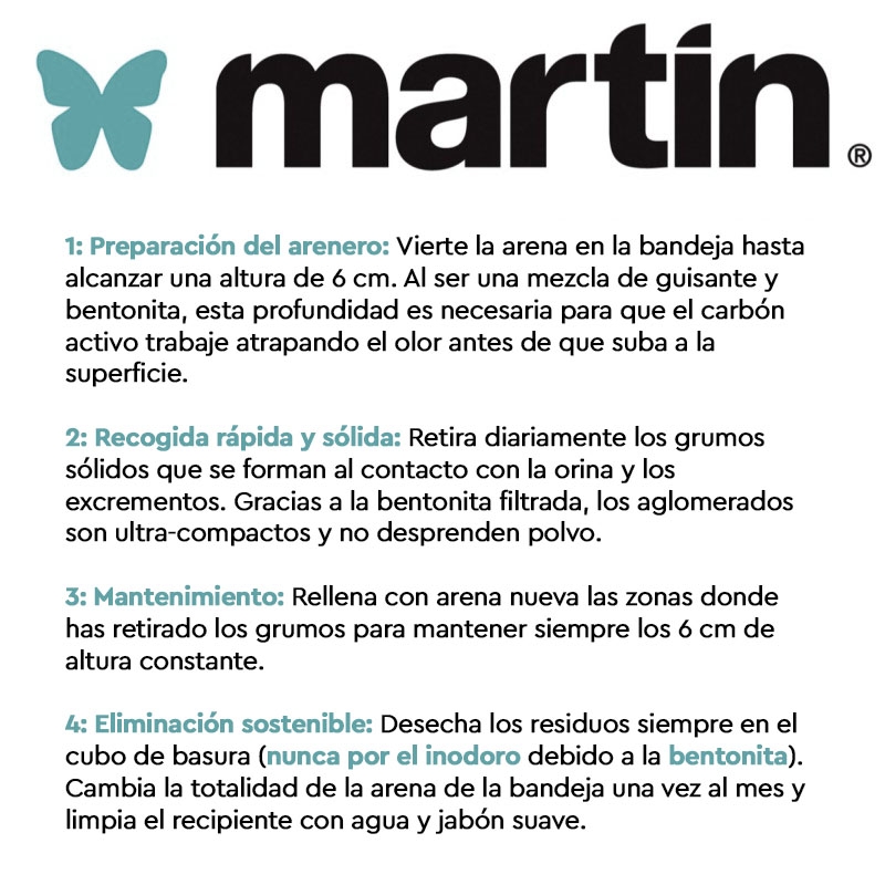 Esta arena para gatos está formulada para quienes buscan un control eficaz del olor sin renunciar a la comodidad en la limpieza diaria. Se trata de una arena mixta para gatos compuesta por un 70% de guisante vegetal enriquecido con carbón activo y un 30% de bentonita, una combinación pensada para ofrecer un equilibrio óptimo entre absorción, aglomeración y neutralización de olores. Es compatible con areneros automáticos.