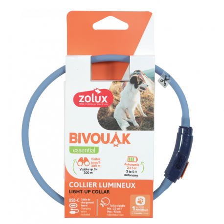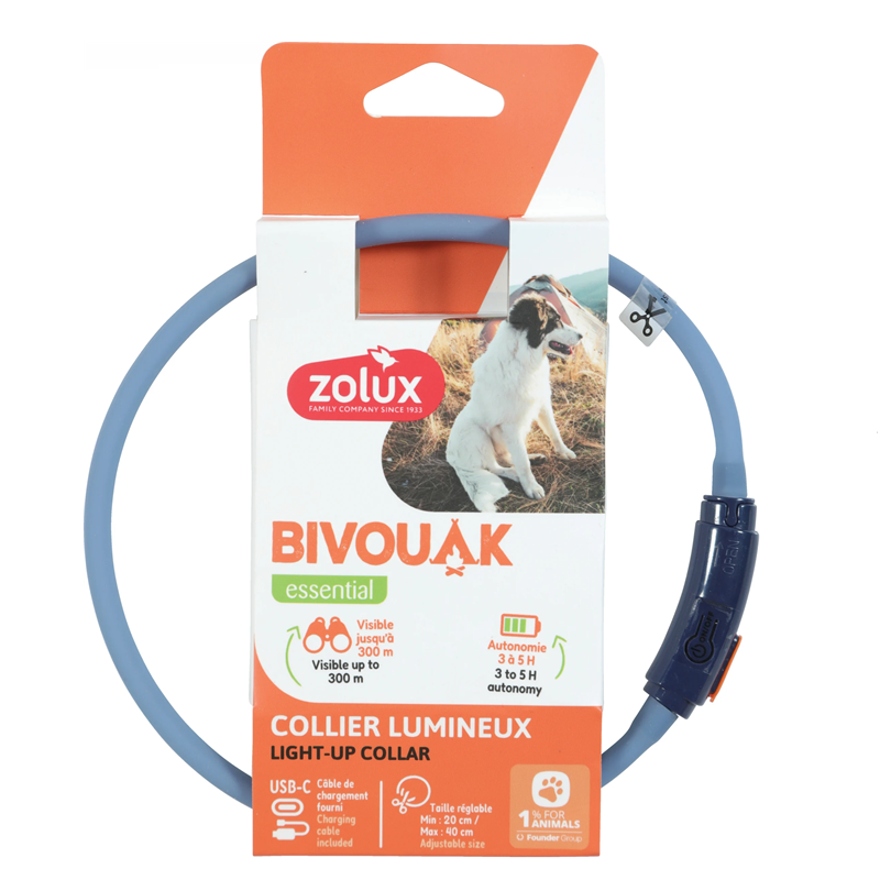El collar luminoso para cachorros color azul Zolux Bivouak es un accesorio pensado para aumentar la seguridad y visibilidad de los perros más jóvenes durante los paseos al anochecer o en condiciones de baja iluminación. Su diseño está adaptado a cachorros de pelo largo, permitiendo que la luz sea visible alrededor del cuello sin quedar tapada por el pelaje.