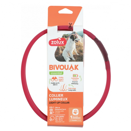 El collar luminoso para perros color rojo Zolux Bivouak está diseñado para ofrecer máxima visibilidad y seguridad durante los paseos nocturnos o en condiciones de poca luz. Especialmente pensado para perros de pelo largo, este collar luminoso permite localizar al animal con facilidad, aportando tranquilidad tanto en entornos urbanos como en zonas menos iluminadas.