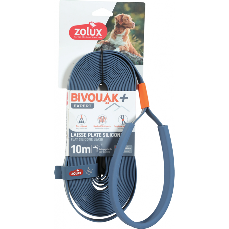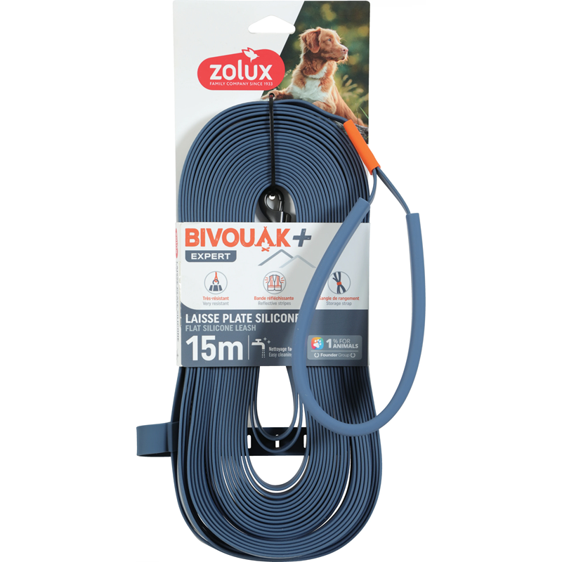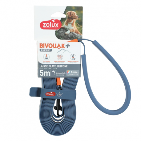 La correa plana de silicona Zolux Bivouak color azul está diseñada para tutores que buscan una correa larga, resistente y funcional, perfecta para paseos controlados, entrenamiento o actividades al aire libre. Su estructura plana permite un manejo más estable, ofreciendo al perro libertad de movimiento sin renunciar a un control seguro.