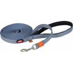 El color azul con bandas reflectantes ofrece una estética sobria y moderna, al tiempo que mejora la visibilidad en condiciones de poca luz, siendo especialmente útil para paseos nocturnos o al amanecer. Disponible en dos longitudes (5 m y 10 m), esta correa se adapta a distintas necesidades. Además, cuenta con el Sello 1% Para Los Animales, apoyando la protección animal.