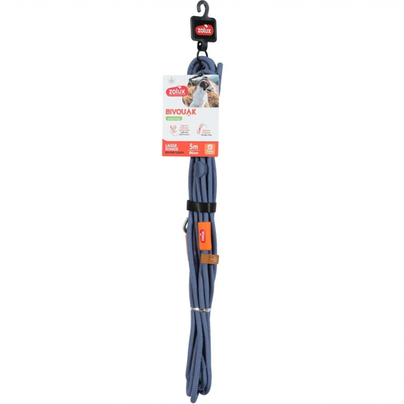 Fabricada en poliéster de alta resistencia, la correa Zolux Bivouak incorpora un mosquetón robusto capaz de soportar hasta 60 kg, garantizando una sujeción firme y duradera. Su diámetro de 6 mm ofrece un equilibrio óptimo entre ligereza y solidez, lo que la convierte en una opción versátil para perros de todos los tamaños.