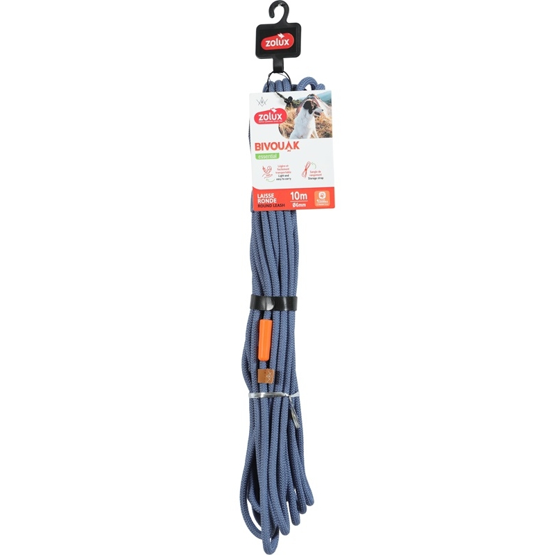 La correa redonda de nylon Zolux Bivouak color azul está diseñada para ofrecer una combinación perfecta de comodidad, resistencia y libertad de movimiento durante paseos, entrenamientos y actividades al aire libre. Esta longe redonda es ideal para tutores que buscan un accesorio fiable que permita al perro explorar con confianza sin perder el control.